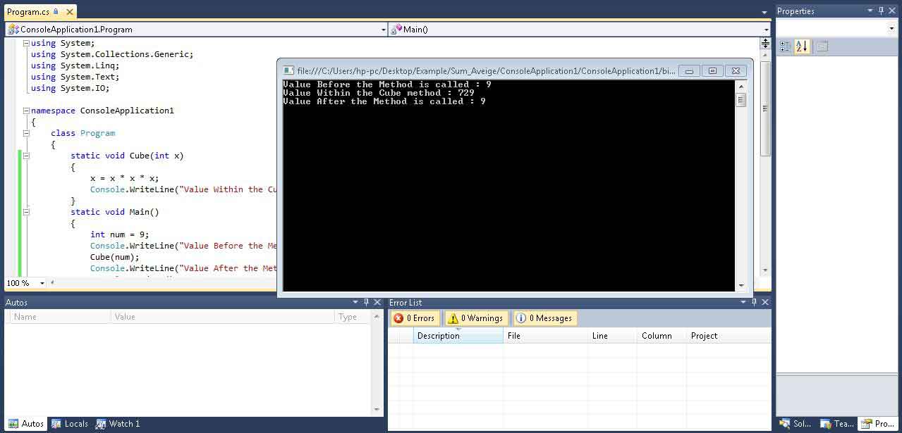 Console.WriteLine("Value Within the Cube method : {0}", x);