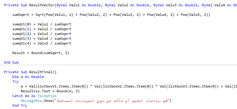 ResultVector(Convert.ToDouble(VVV1.Text), Convert.ToDouble(VVV2.Text), Convert.ToDouble(VVV3.Text), Convert.ToDouble(VVV4.Text), Convert.ToDouble(VVV5.Text));