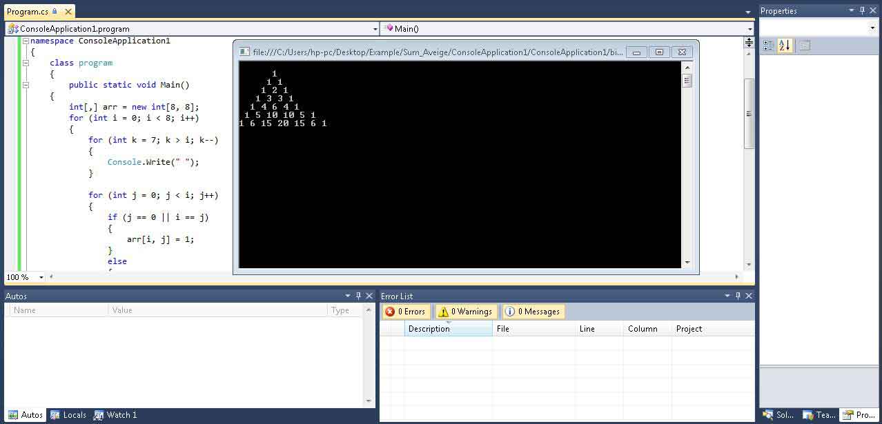 برنامج لعرض الأرقام على شكل مثلث C#.Net