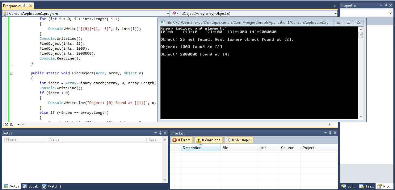 برنامج للتفتيش عن قيم داخل فهرس المصفوفة C#.Net