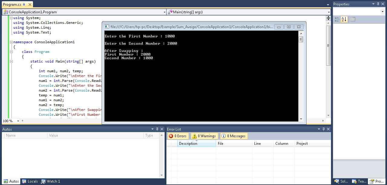 برنامج للتبديل بين عددين مدخلين C#.Net