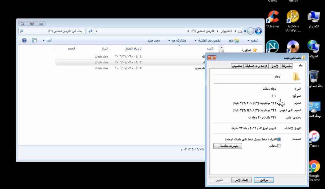 مثال سأقوم بنسخ ملف موجود في قرص E حجمة 231 ميجا بايت