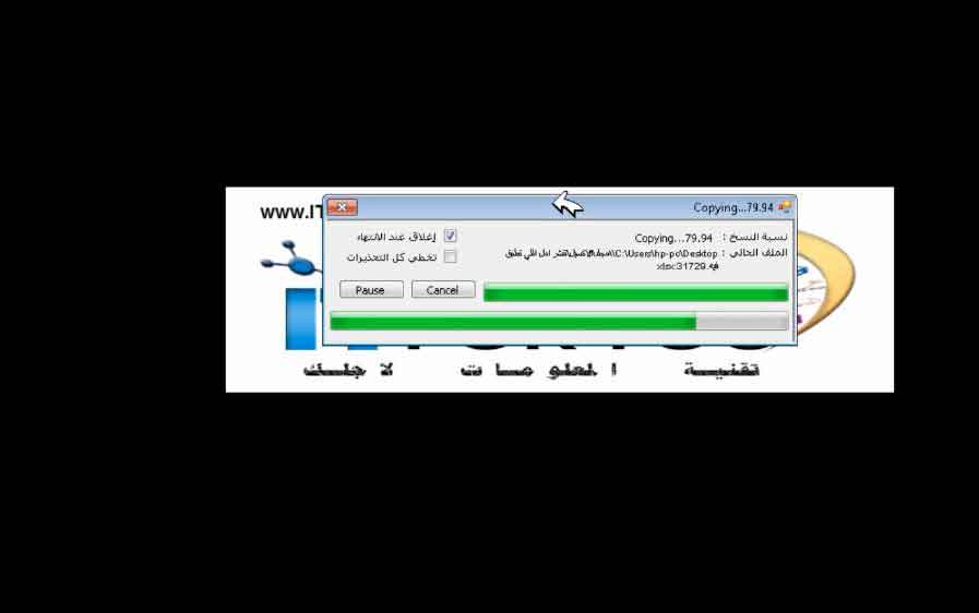 وايضاً تستطيع ايقاف مؤقت للنسخ واسنمرار