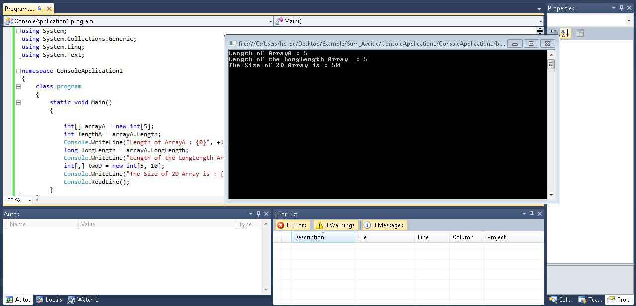Console.WriteLine("Length of ArrayA : {0}", +lengthA);