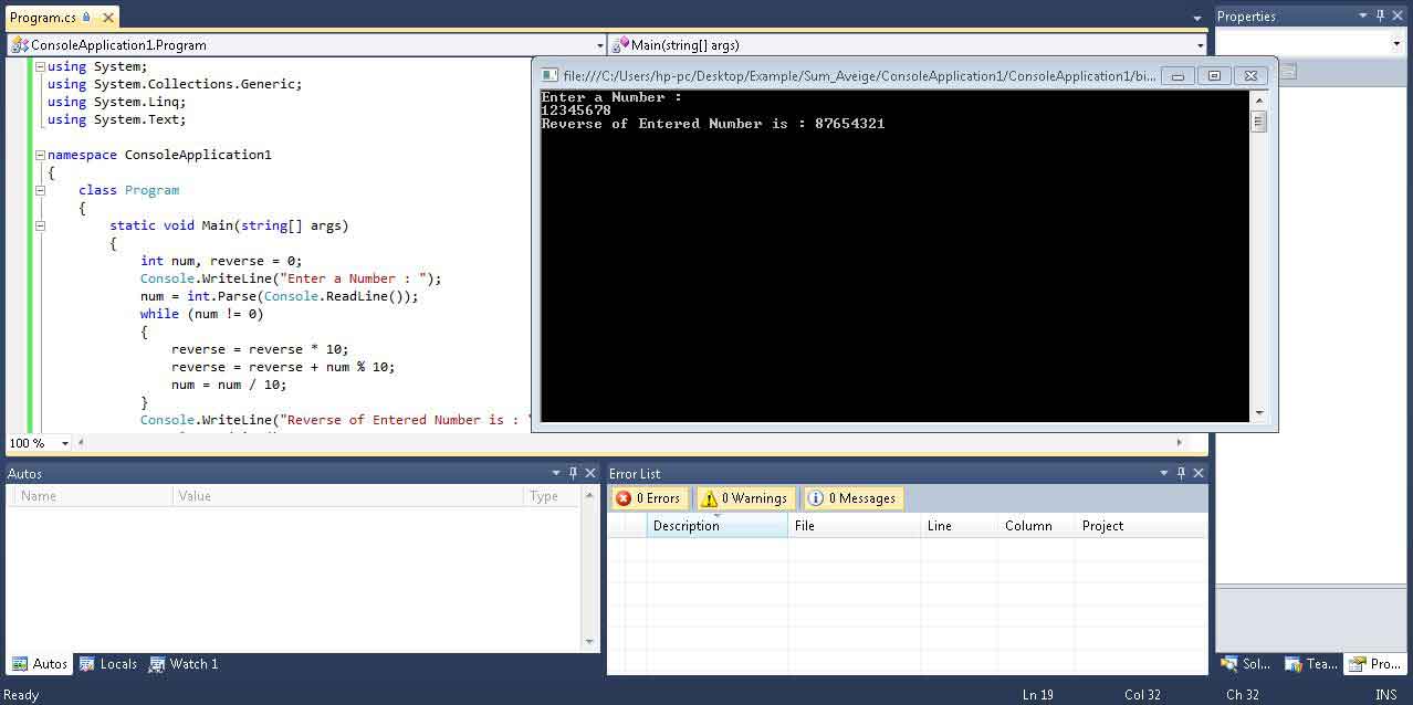 برنامج يقوم بعكس الاعداد المدخلة C#.Net