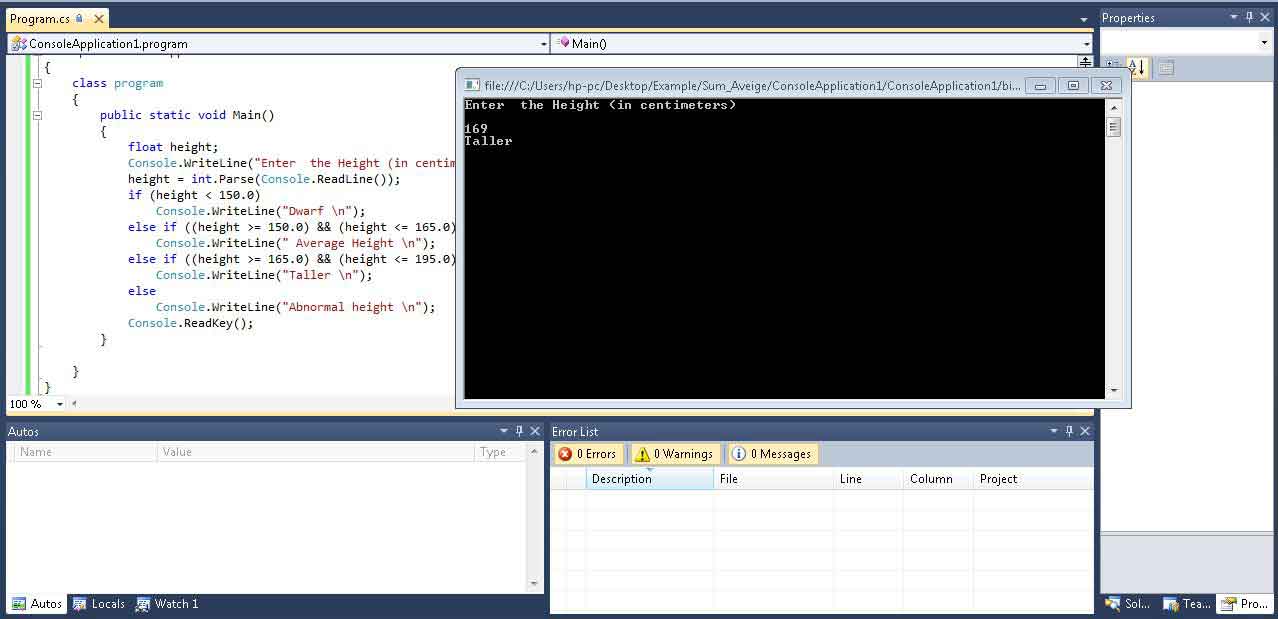 برنامج لتحمل الارتفاع من شخص وتصنيفك طويل القامة، قزم أو متوسط C#.Net