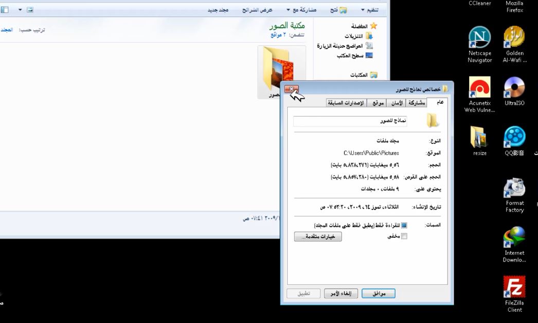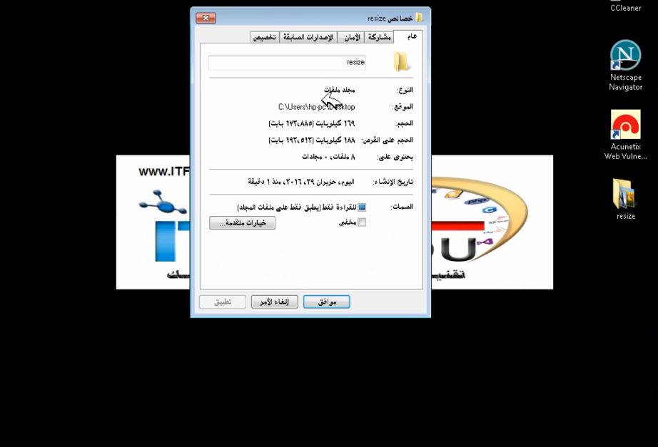 لاحظ بعد عملية التقليص اصبح حجم المف الذي قمنا بحفظ الصور فيه 169 كيلو بايت