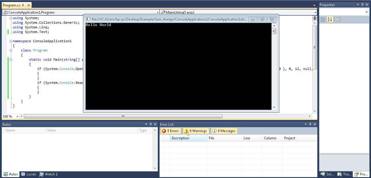 دالة كتابة Hello بدون إستخدام C#.Net WriteLine