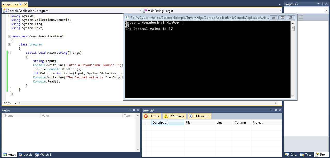 برنامج للتحويل من نظام السادس عشر الى عشري C#.Net