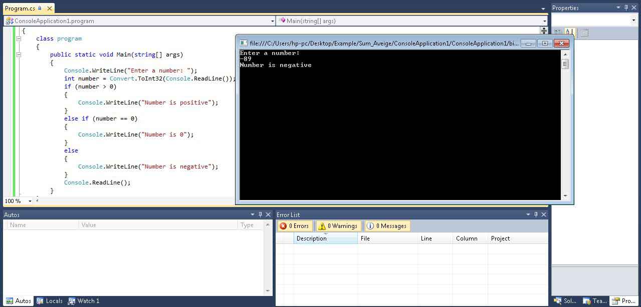 برنامج طباعة هل العدد المدخل سالب ام موجب C#.Net
