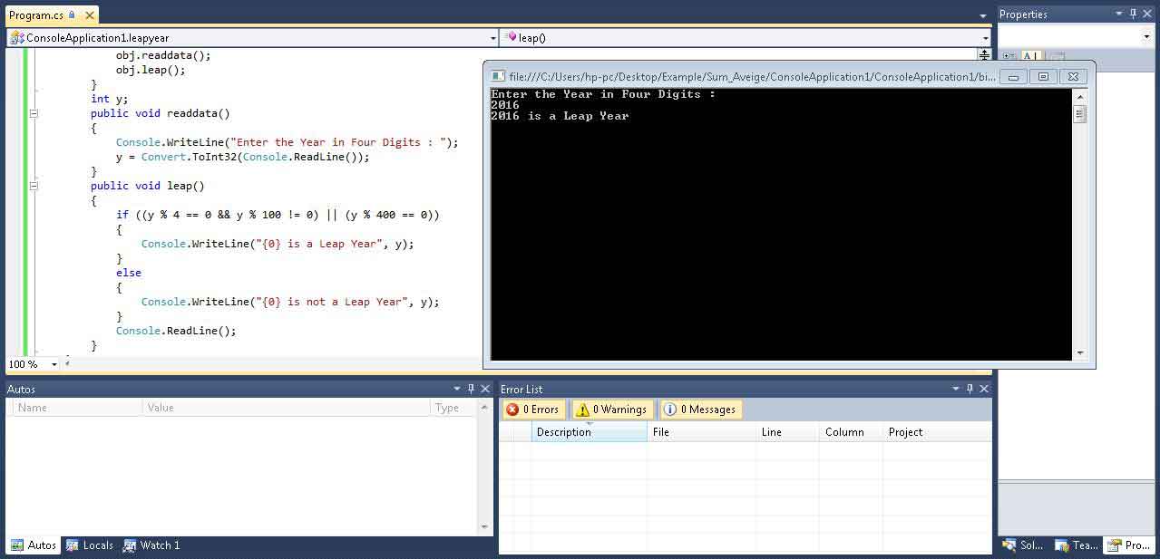 برنامج لفحص ما إذا كانت السنة هي سنة كبيسة أم لا C#.Net