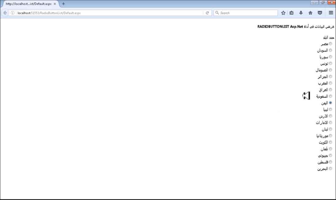 طريقة عرض البيانات في أداة RadioButtonList Asp.Net
