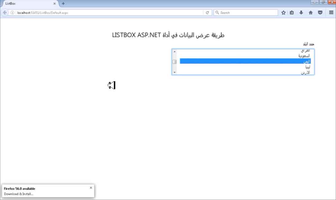 طريقة عرض البيانات في أداة ListBox Asp.Net