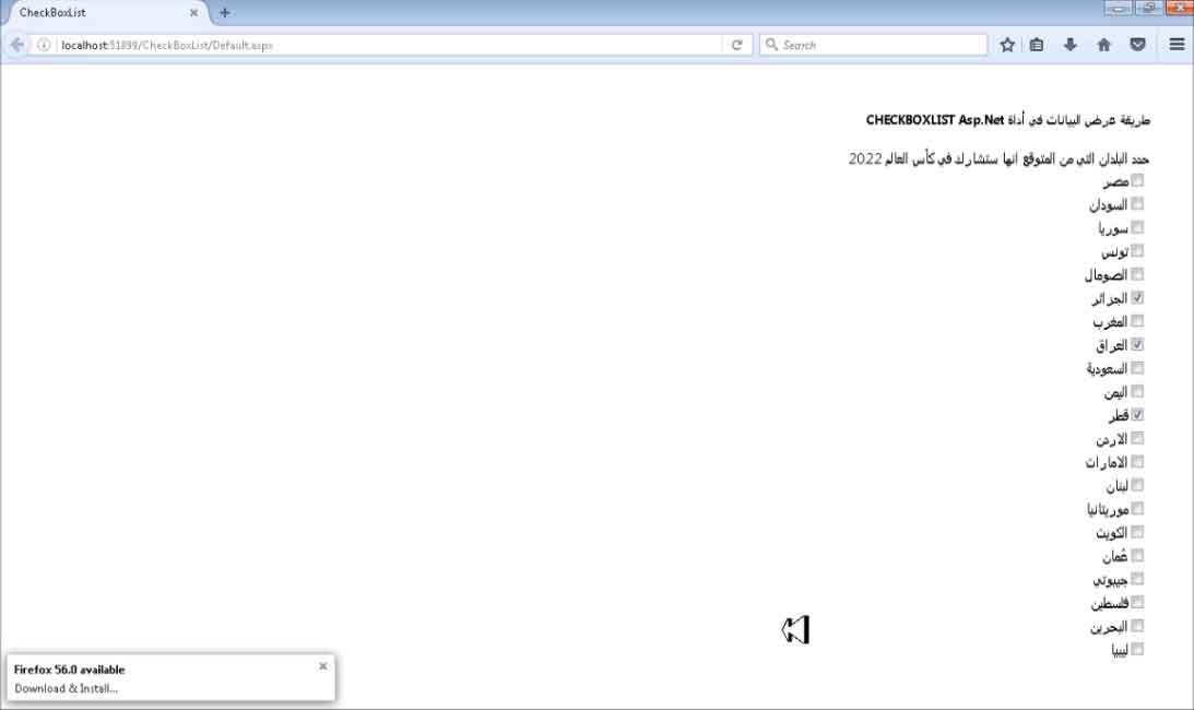 طريقة عرض البيانات في أداة CheckBoxList Asp.Net