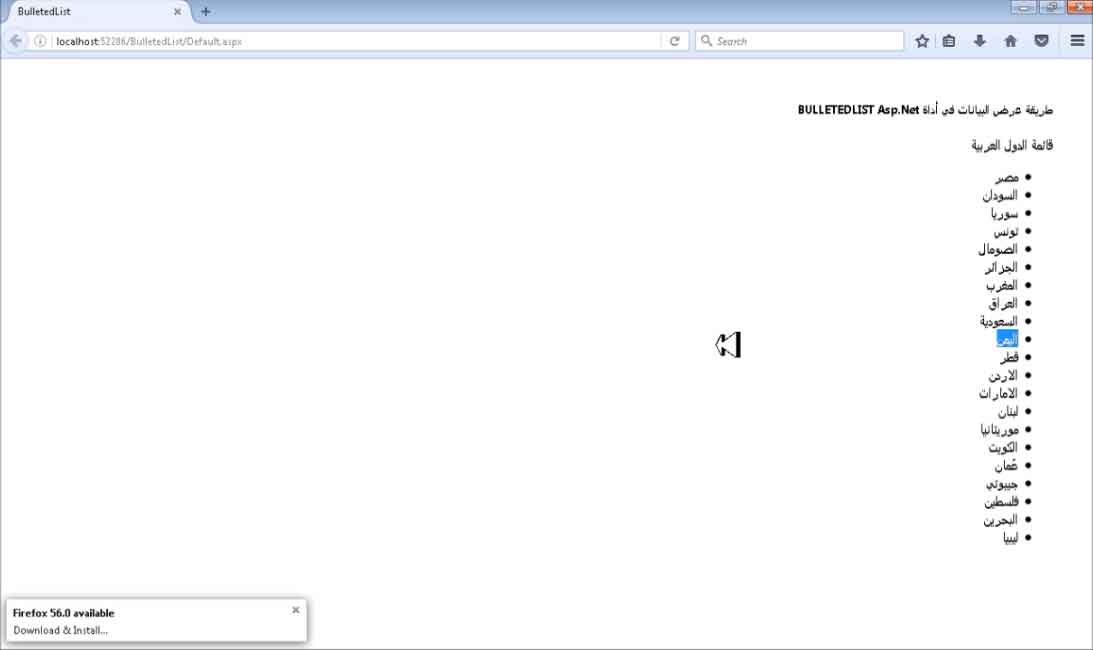 طريقة عرض البيانات في أداة BulletedList Asp.Net