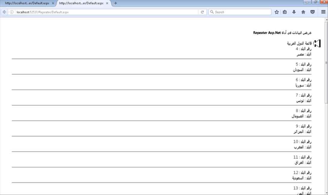 طريقة عرض البيانات في أداة Repeater Asp.Net