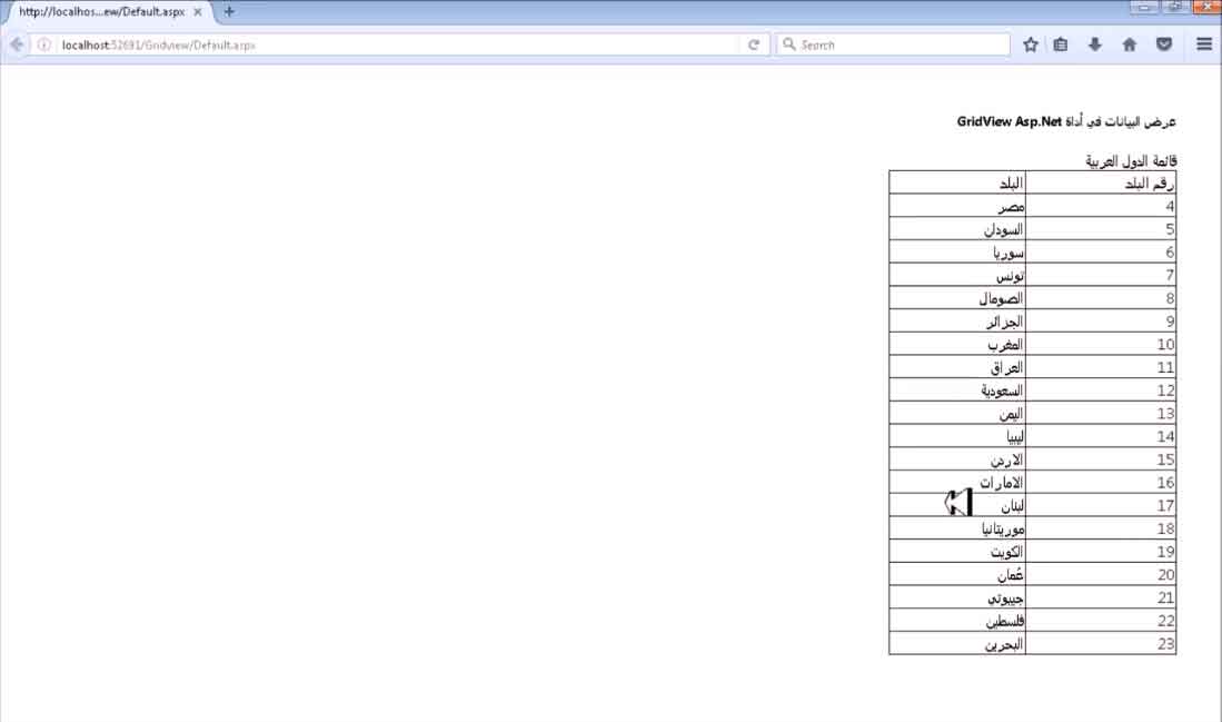 طريقة عرض البيانات في أداة Gridview Asp.Net